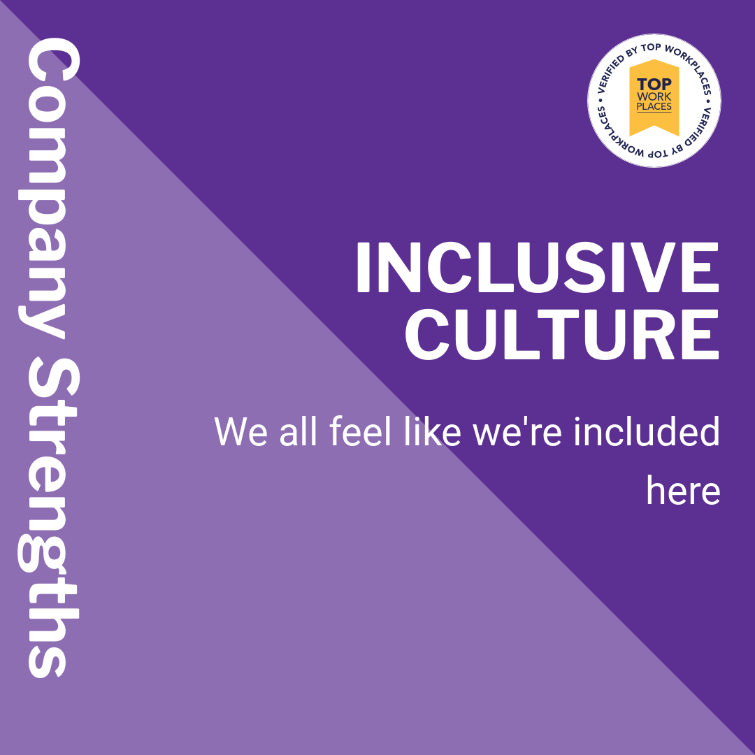 We take pride in our organizational strengths, as chosen by our employees, including Supported Growth and Inclusive Culture. Our commitment to these strengths is reflected in everything we do, from our hiring practices to our employee development programs.